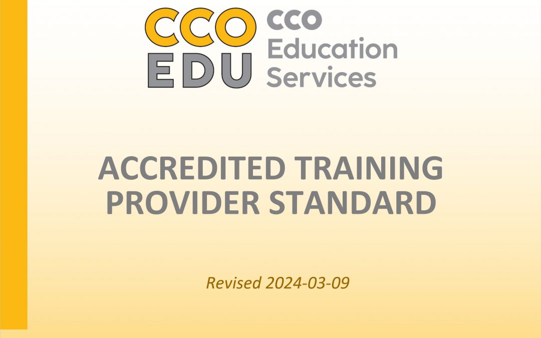 As a core element of its mission to establish a mechanism to accredit training providers to a high standard of quality, CCO Education Services LLC (CCO EDU) is honored to announce that it has completed the development of an Accredited Training Provider Standard (ATPS).